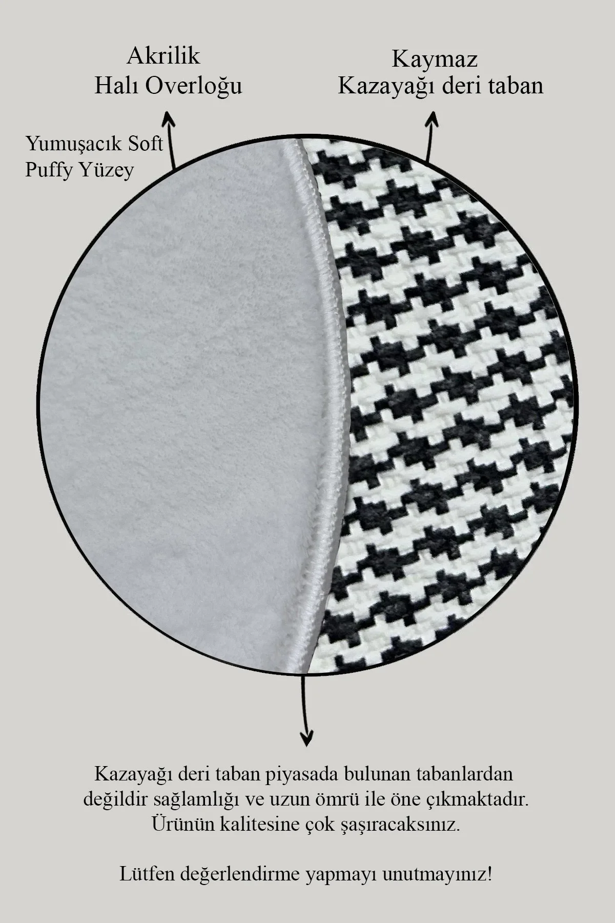 - Modern ve şık tasarımıyla banyonuza estetik bir dokunuş ekleyen geometrik desenli gri gümüş renkli klozet takımı.; - Kaymaz deri taban özelliği sayesinde güvenli adımlar atmanızı sağlar; kayma riskini azaltarak banyo kullanımınızı daha güvenli hale getirir.; - İki parçadan oluşan set; hem pratik hem de şık bir görünüm sunarak banyo dekorasyonunuza kolayca uyum sağlar.; - Deri taban ile bambu kumaşın mükemmel uyumu, uzun ömürlü kullanım vaat ederken aynı zamanda dayanıklılığı artırır.; - Orta hav yüksekliği (6 - 12 mm), konforlu bir kullanım sunarken banyo zemininizde rahat hareket etmenize olanak tanır.; - Üretici firma tarafından kalite standartlarına uygun olarak üretilmiş olan bu set, güvenle tercih edebileceğiniz bir seçenektir.; - Kolay bakım imkanı sunan 30 derecede yıkama talimatına sahip olan bu ürün, sık yıkamaya karşı dayanıklılığıyla ön plana çıkar.; ürünlerimizi 15 gün içerisinde koşulsuz hakkına sahipsiniz.