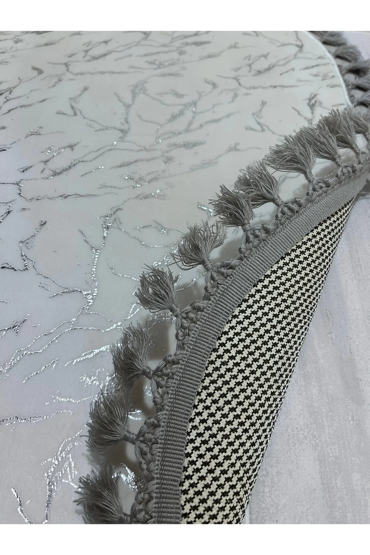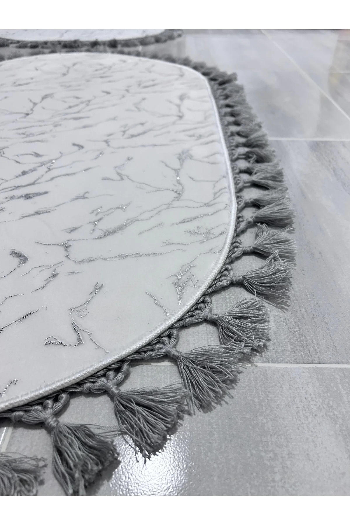- Modern ve şık tasarımıyla banyonuza estetik bir dokunuş ekleyen geometrik desenli gri gümüş renkli klozet takımı.; - Kaymaz deri taban özelliği sayesinde güvenli adımlar atmanızı sağlar; kayma riskini azaltarak banyo kullanımınızı daha güvenli hale getirir.; - İki parçadan oluşan set; hem pratik hem de şık bir görünüm sunarak banyo dekorasyonunuza kolayca uyum sağlar.; - Deri taban ile bambu kumaşın mükemmel uyumu, uzun ömürlü kullanım vaat ederken aynı zamanda dayanıklılığı artırır.; - Orta hav yüksekliği (6 - 12 mm), konforlu bir kullanım sunarken banyo zemininizde rahat hareket etmenize olanak tanır.; - Üretici firma tarafından kalite standartlarına uygun olarak üretilmiş olan bu set, güvenle tercih edebileceğiniz bir seçenektir.; - Kolay bakım imkanı sunan 30 derecede yıkama talimatına sahip olan bu ürün, sık yıkamaya karşı dayanıklılığıyla ön plana çıkar.; ürünlerimizi 15 gün içerisinde koşulsuz hakkına sahipsiniz.