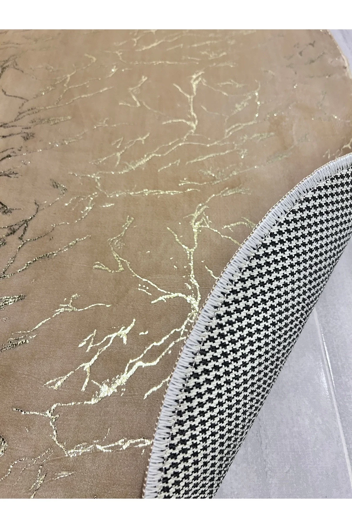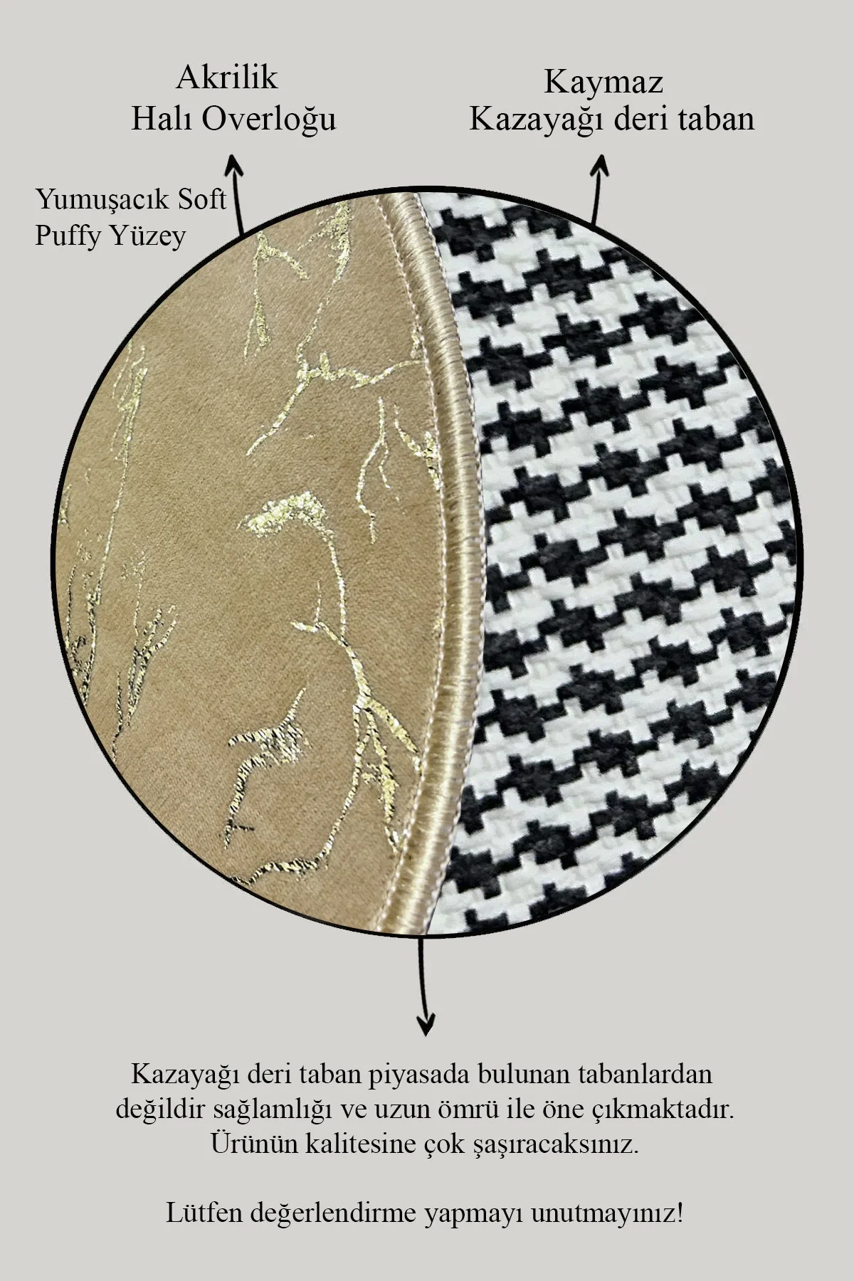 - Modern ve şık tasarımıyla dikkat çeken geometrik desen, banyonuzun dekorasyonuna zarif bir dokunuş katıyor.; - Cappicino Gold rengi ile sıcak ve davetkar bir atmosfer yaratırken, altın rengi detaylarıyla göz alıcı bir kontrast sunuyor.; - Kaymaz taban özelliği sayesinde güvenli adımlar atmanızı sağlar; kayma riskini minimize eder ve kullanım konforunu artırır.; - 30 derecede kısa programda sıkmasız yıkama imkanı sunarak pratik temizlik sağlar; böylece paspaslarınız uzun süre ilk günkü gibi kalır.; - Orta hav yüksekliği (6 - 12 mm), konforlu bir kullanım deneyimi için idealdir; ayaklarınızın rahatça yerle temas etmesini sağlar.; - Üretici firma tarafından ithal edilen bu ürün, kalite standartlarına uygun olarak üretilmiştir; yerel üretim avantajıyla ekonomik avantajlar sunar.; - İki parçadan oluşan set halinde gelen bu takım, hem fonksiyonellik hem de estetik açıdan bütünlük sağlar; banyo zemininizi tamamlar.; - Deri taban ile bambu kumaş karışımından oluşan materyal bileşeni sayesinde dayanıklılık ve yumuşaklık bir arada sunulur; hem estetik hem de fonksiyonel bir seçim yapmış olursunuz.; - Bordo Halı'nın üretici bilgisiyle güvenle tercih edebileceğiniz bu set, kaliteyi ve memnuniyeti garanti altına alır.