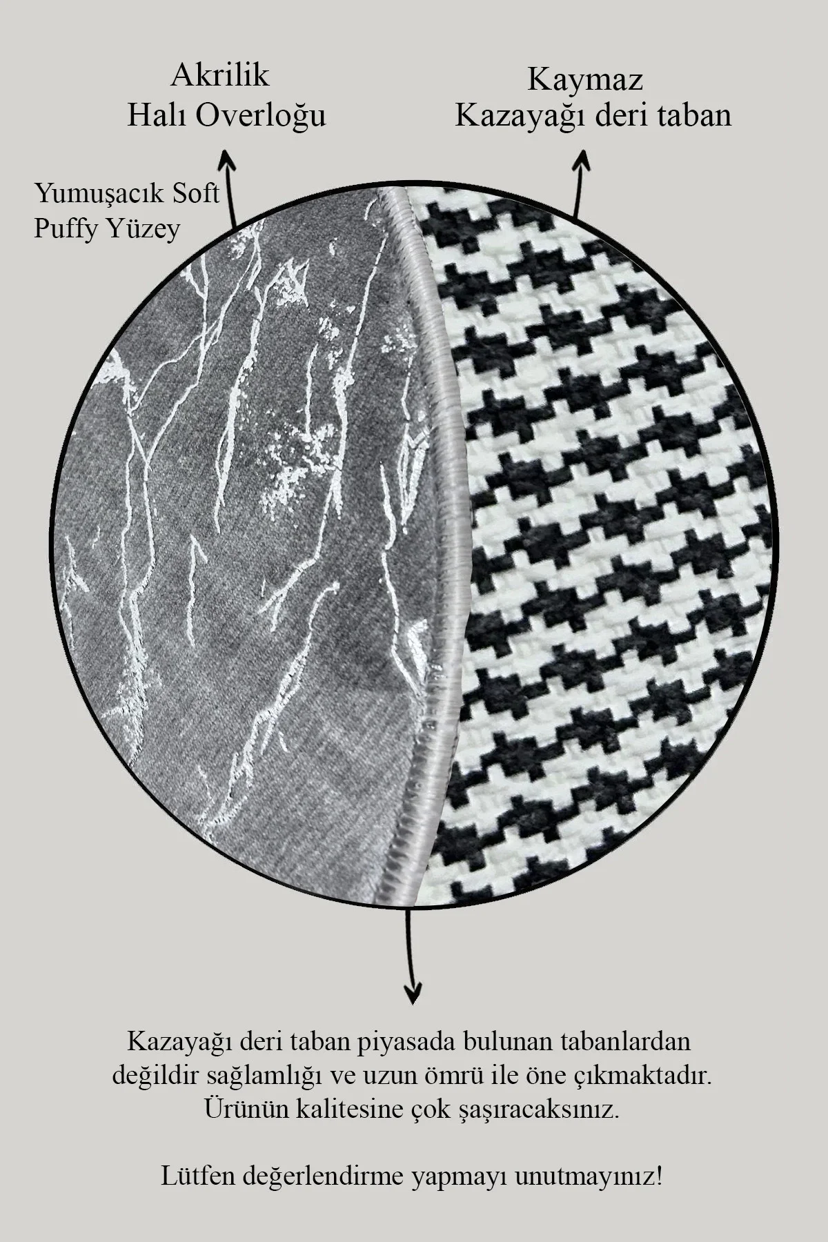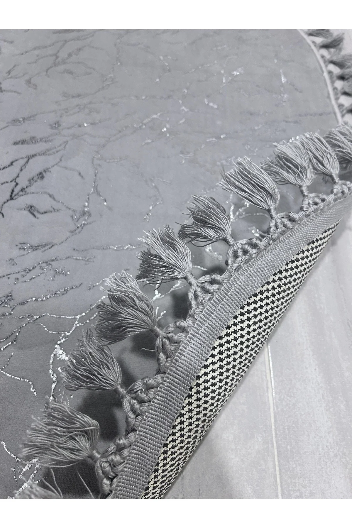 - Modern ve şık tasarımıyla banyonuza estetik bir dokunuş ekleyen geometrik desenli gri gümüş renkli klozet takımı.; - Kaymaz deri taban özelliği sayesinde güvenli adımlar atmanızı sağlar; kayma riskini azaltarak banyo kullanımınızı daha güvenli hale getirir.; - İki parçadan oluşan set; hem pratik hem de şık bir görünüm sunarak banyo dekorasyonunuza kolayca uyum sağlar.; - Deri taban ile bambu kumaşın mükemmel uyumu, uzun ömürlü kullanım vaat ederken aynı zamanda dayanıklılığı artırır.; - Orta hav yüksekliği (6 - 12 mm), konforlu bir kullanım sunarken banyo zemininizde rahat hareket etmenize olanak tanır.; - Üretici firma tarafından kalite standartlarına uygun olarak üretilmiş olan bu set, güvenle tercih edebileceğiniz bir seçenektir.; - Kolay bakım imkanı sunan 30 derecede yıkama talimatına sahip olan bu ürün, sık yıkamaya karşı dayanıklılığıyla ön plana çıkar.; ürünlerimizi 15 gün içerisinde koşulsuz hakkına sahipsiniz.